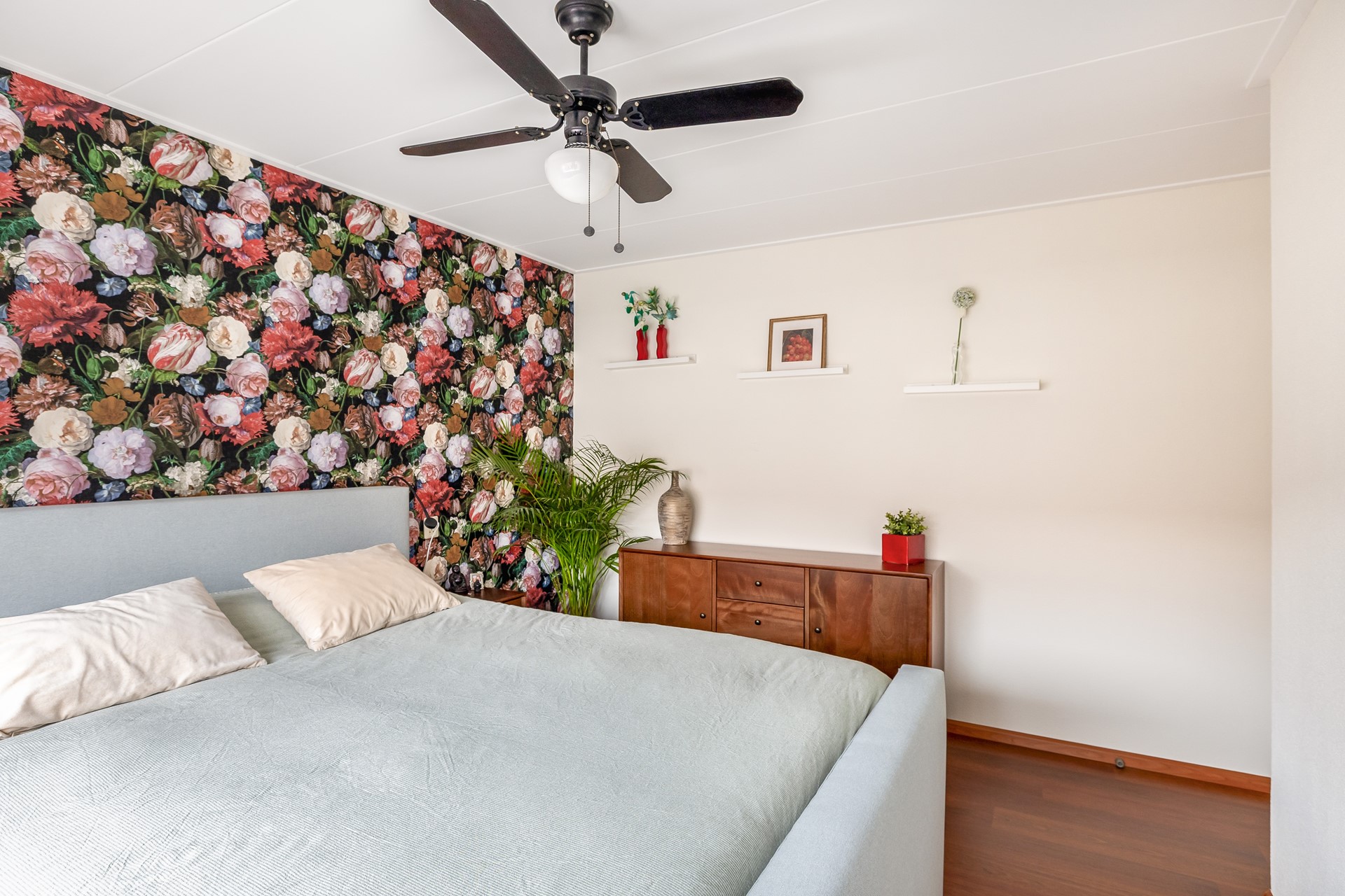 De overloop biedt toegang tot drie fijne slaapkamers, de badkamer en de trapopgang naar de 2e verdieping. De hoofdslaapkamer is gelegen aan de achterzijde en is voorzien van rolluiken. Slaapkamer 2, eveneens aan de achterzijde, is iets kleiner van formaat maar biedt voldoende ruimte voor een volwaardige slaapkamer en beschikt ook over rolluiken. Slaapkamer 3 is gelegen aan de voorzijde van de woning, is eveneens lekker ruim en heeft een mooi uitzicht over de singel en het park.
