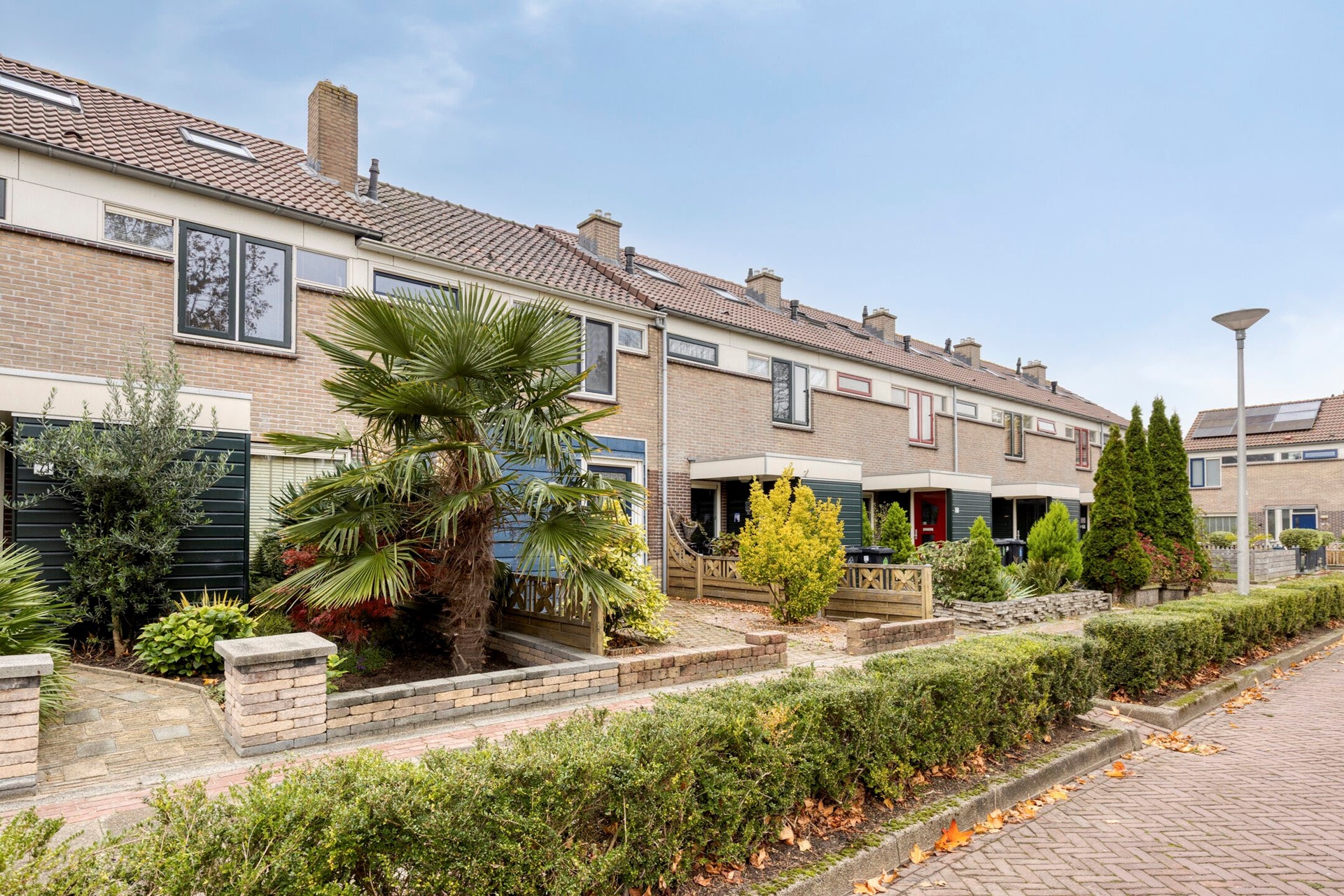 De voortuin is deels bestraat en voorzien van borders met vaste beplanting.
