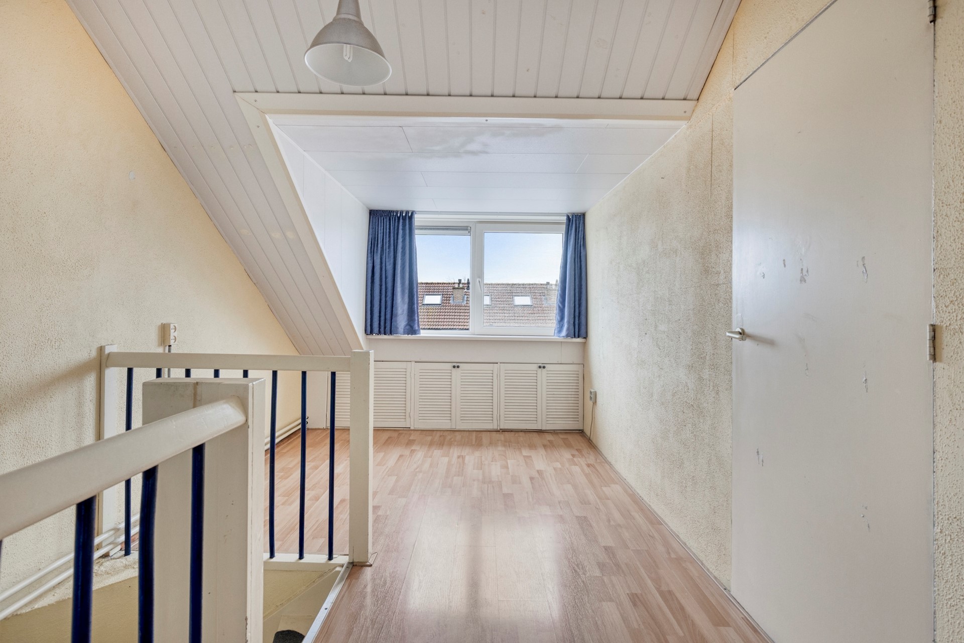 De tweede verdieping is ingedeeld in twee ruimtes. Door de dakkapel, die over beide ruimtes doorloopt, is hier veel extra ruimte ontstaan.