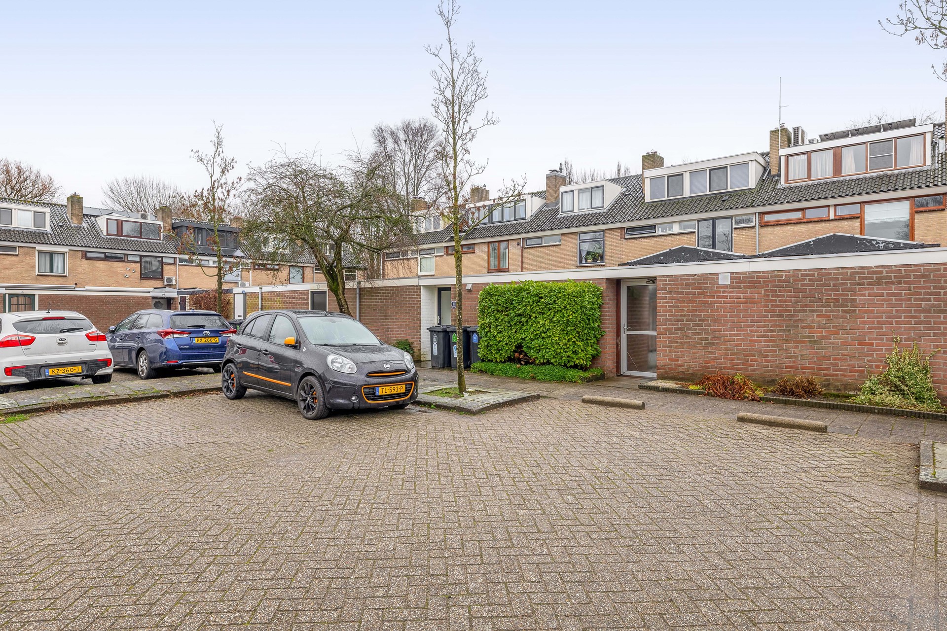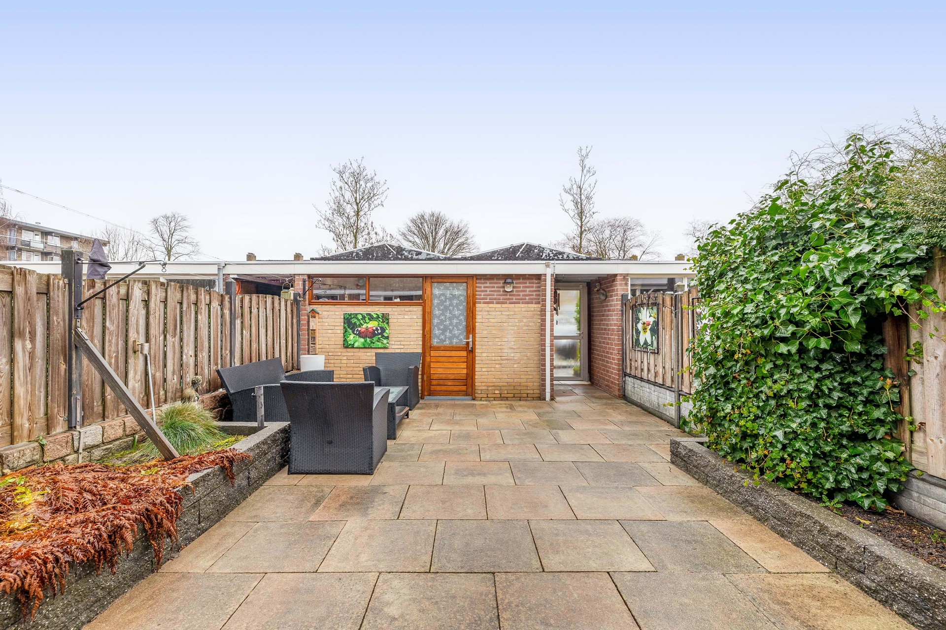 Vanuit de keuken is er toegang tot de achtertuin, gelegen op het noordoosten. De achtertuin heeft een buitenkraan, is grotendeels bestraat met tegels en beschikt tevens over groenborders. De bewoners laten de tuintafel met 4 stoelen én de loungeset achter voor de kopers! Achter in de tuin vinden we nog een ruime schuur met elektra. Naast de schuur is er een overkapping met een achterom naar het achtergelegen parkeerplein. Het parkeerplein biedt heerlijk veel parkeerruimte, maar ook in andere straten van de wijk kan uiteraard geparkeerd worden.