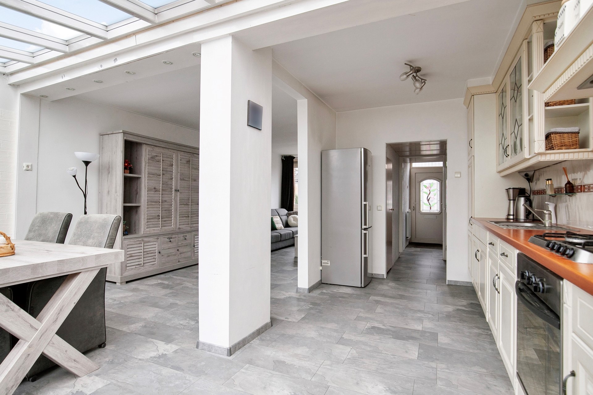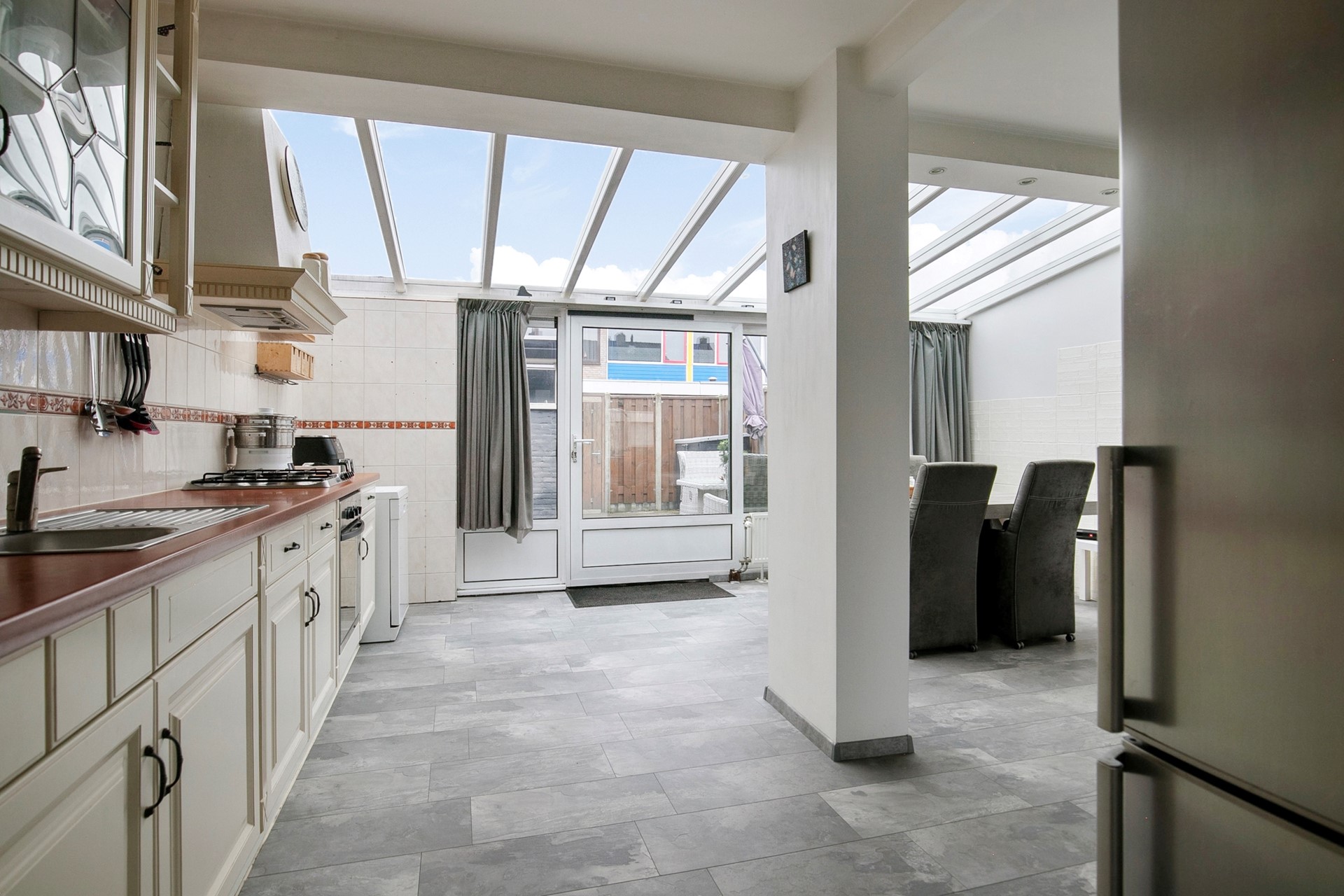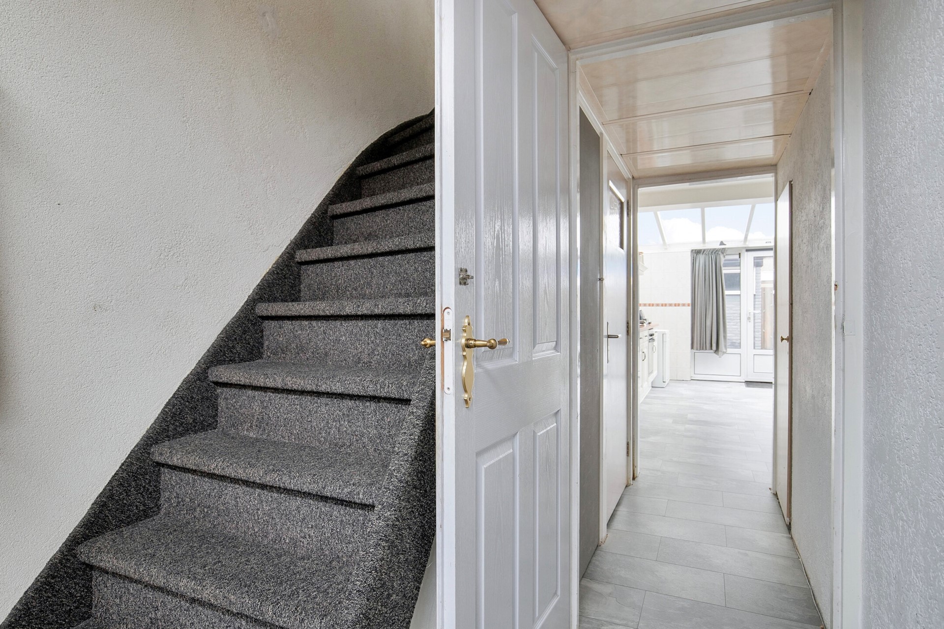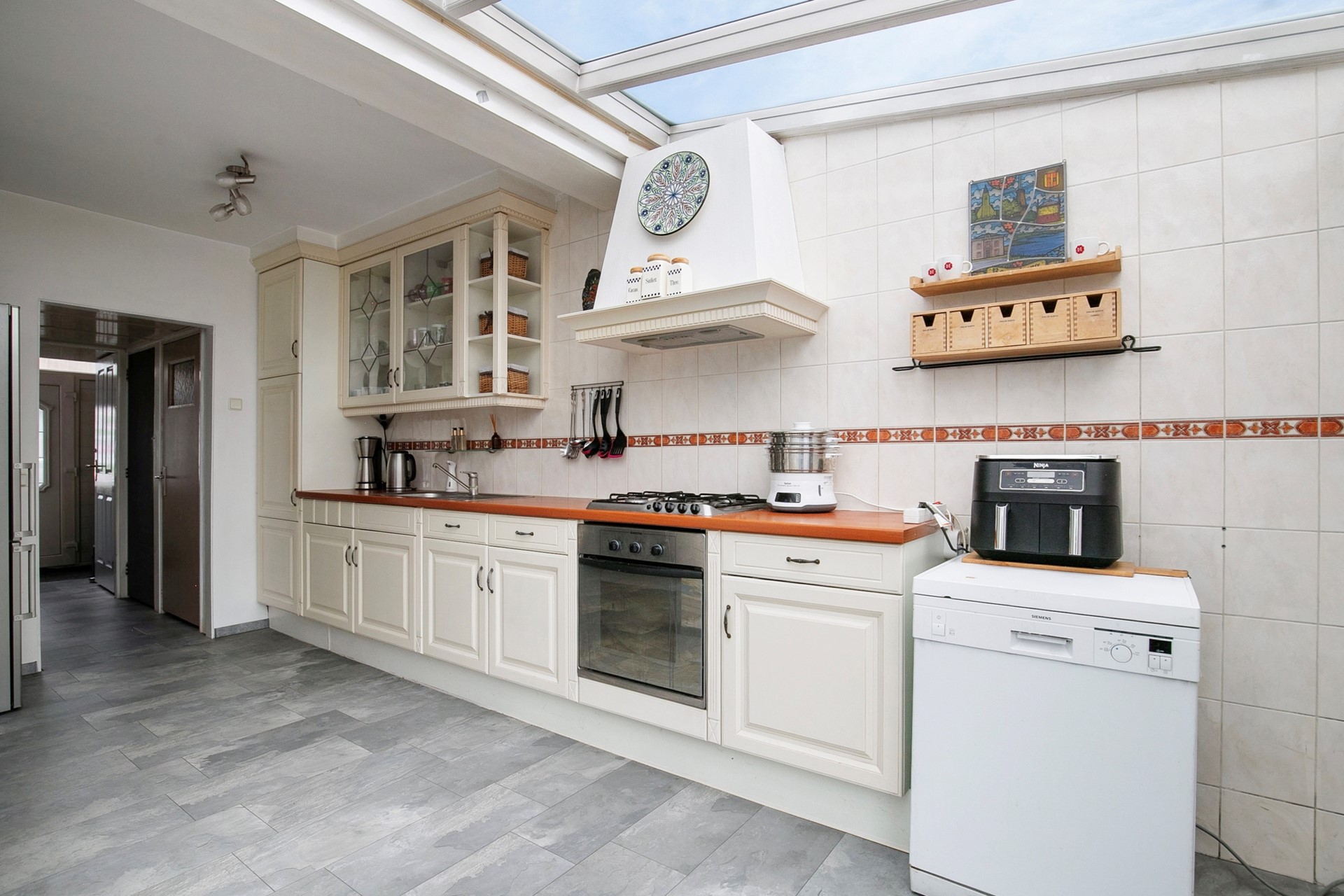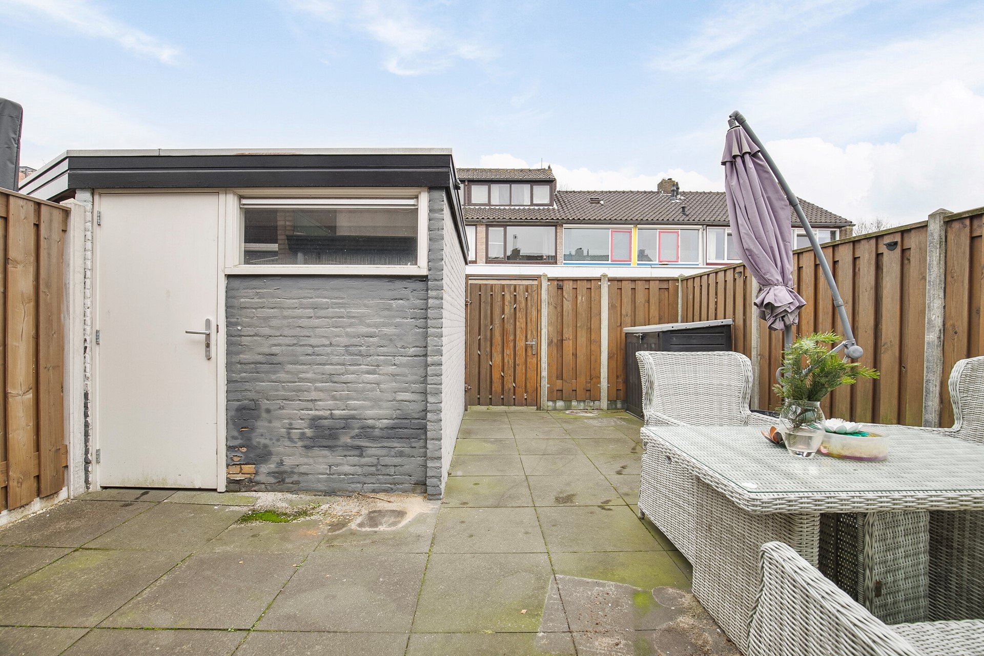 Vanuit de keuken heeft u toegang tot de achtertuin, gelegen op het zuidoosten. De tuin is volledig betegeld, voorzien van moderne schuttingen, een stenen berging met elektra en beschikt over een achterom.