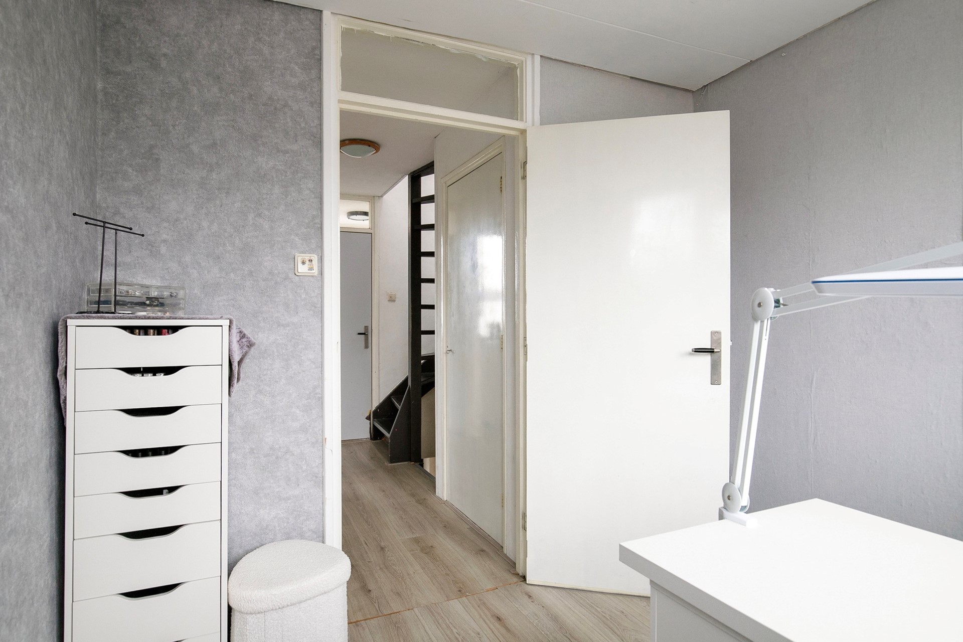De overloop biedt toegang tot 3 slaapkamers, de badkamer en een bergkast. De grootste slaapkamer bevindt zich aan de achterzijde en heeft uitzicht op de achtertuin. De tweede slaapkamer aan de achterzijde is iets kleiner van formaat, maar kan ook prima worden ingericht als kinderslaapkamer. Slaapkamer 3 is gelegen aan de voorzijde van de woning en is eveneens ruim van opzet. De bergkast is diep en biedt veel ruimte voor bijvoorbeeld beddengoed, handdoeken of voorraadspullen.
