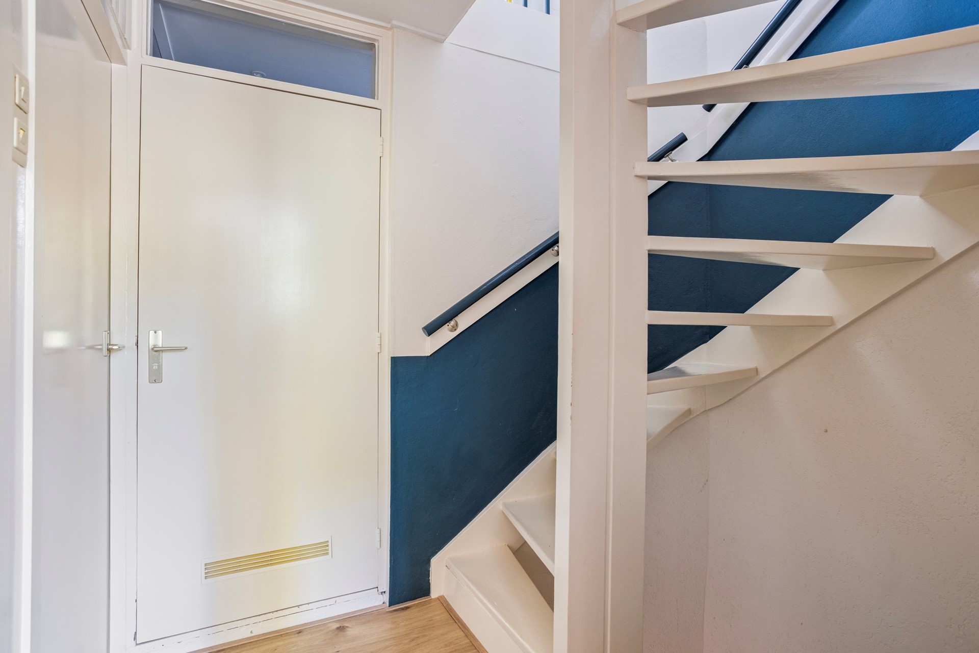 We komen binnen in de aangebouwde entree waar ruimte is voor de garderobe en waar ook de meterkast zich bevindt.
