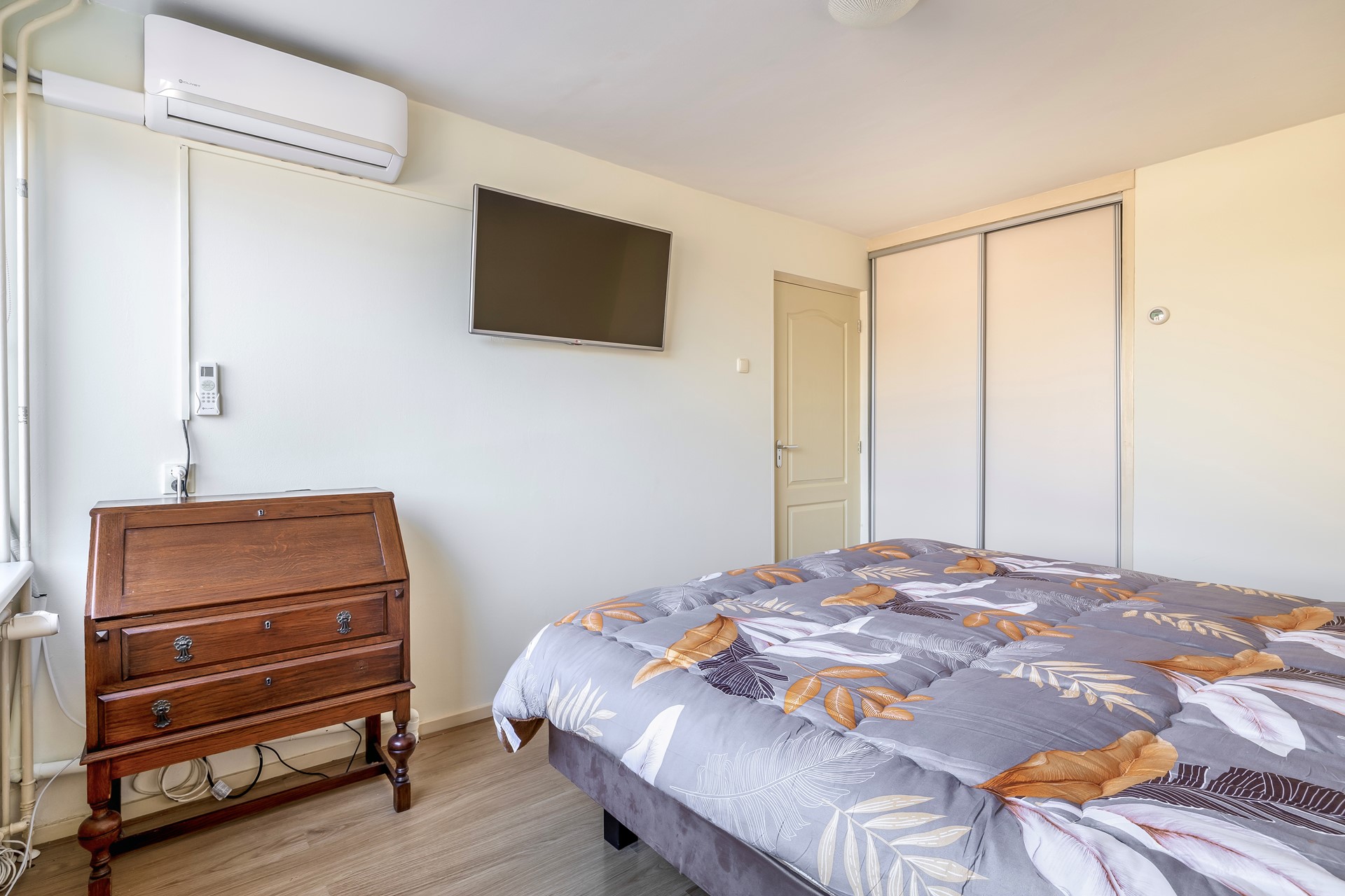 Aan de voorzijde bevinden zich twee slaapkamers, waarvan één momenteel in gebruik is als kastenkamer. De derde slaapkamer ligt aan de achterzijde. De twee ruimere slaapkamers zijn voorzien van airconditioning.