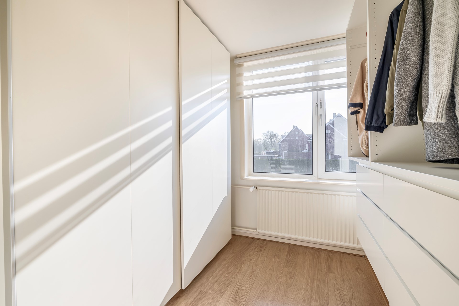 Bij binnenkomst in de vergrote entree tref je de garderobe, meterkast en het in 2024 gerenoveerde toilet.