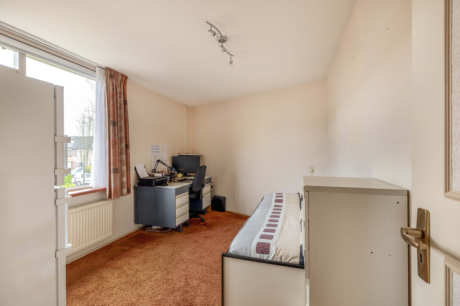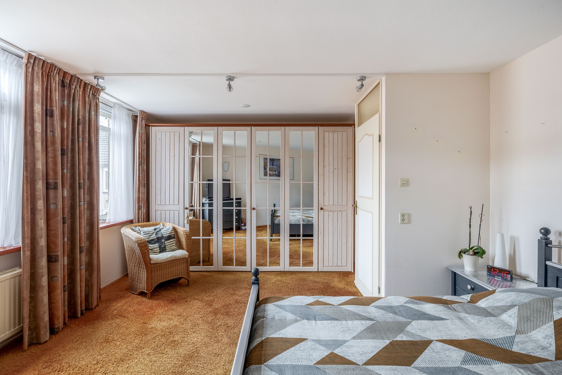 De eerste slaapkamer is gelegen aan de voorzijde van de woning. De tweede slaapkamer bevindt zich aan de achterzijde en is vergroot door twee slaapkamers samen te voegen tot één ruime slaapkamer. Een heerlijke, grote slaapkamer met voldoende ruimte voor een grote kast.