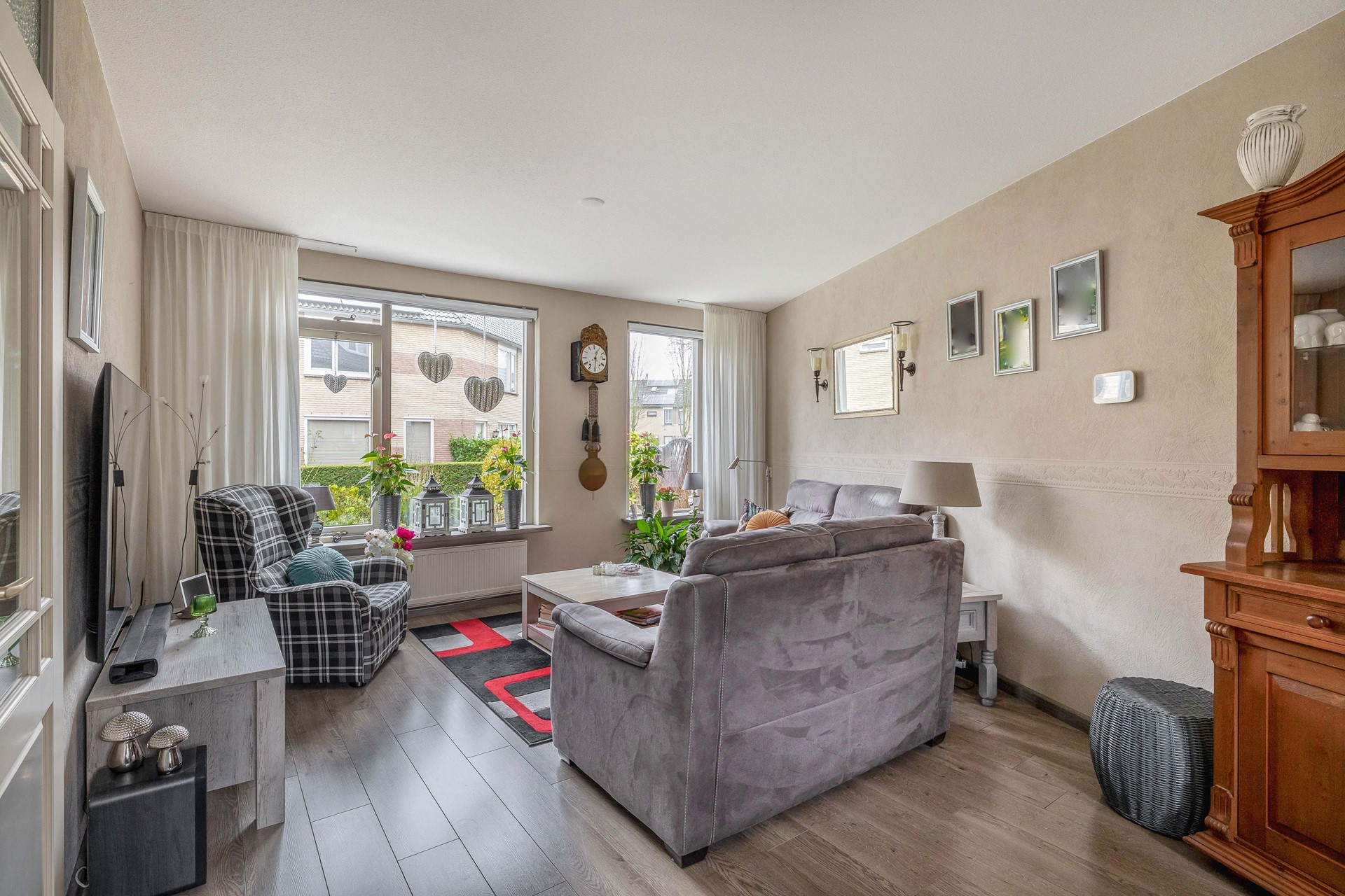 Leuke en verzorgde hoekwoning met een ruime, lichte woonkamer, een open keuken en maar liefst drie comfortabele slaapkamers, waardoor deze woning bij uitstek geschikt is voor gezinnen. De badkamer is stijlvol uitgevoerd in zwart-, wit- en grijstinten en beschikt over een douchecabine, wastafel en een tweede toilet. Zowel aan de voor- als achterzijde heeft de woning een fijne tuin: aan de voorzijde een plek om van de zon te genieten en aan de achterzijde een praktische tuin met achterom naar de stenen berging.